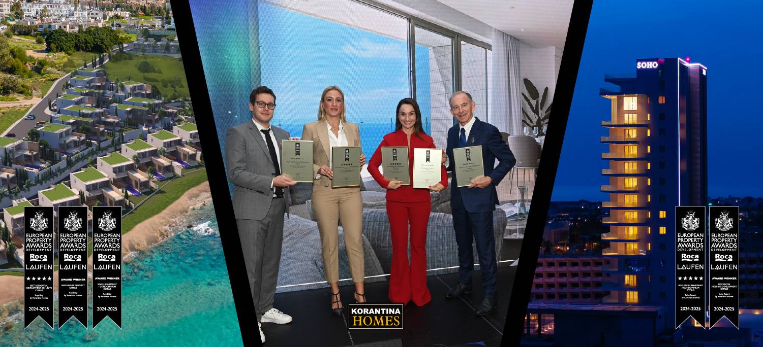 Korantina Homes is proud to announce that it has been awarded in five (5) categories at the prestigious European Property Awards, held in London on October 17th, 2024. The company’s standout projects, SOHO RESORT and ROYAL BAY, were recognised for their exceptional design, quality, and impact on the real estate landscape in Cyprus.